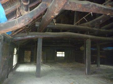 2階へあがると丸太組みがいきなり見えます。