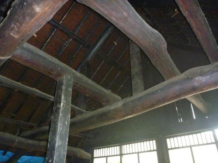 茅葺きの屋根にトタンをかぶせた屋根です。