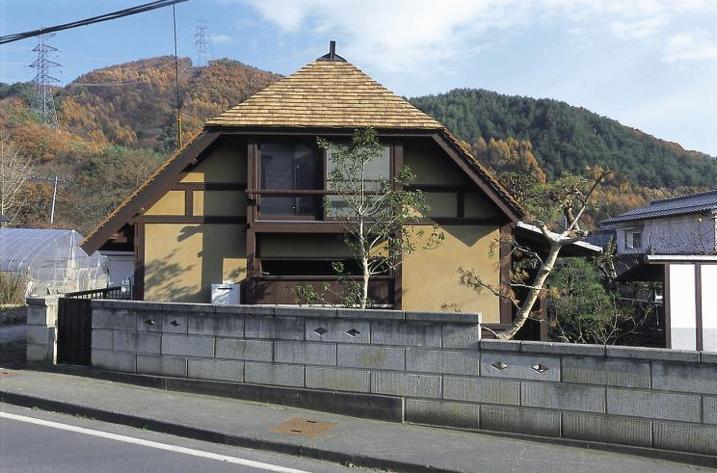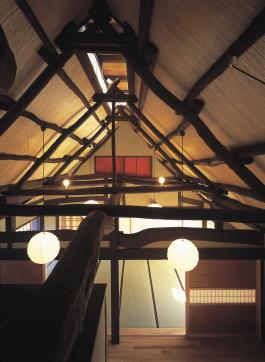 この民家は構造材が細く、解体してしまうと再び組み直すのが困難なため、骨組みはばらさずに再生する手法として、建物をスケルトンな状態にして一メートル程度持ち上げ、基礎や土台を造り再び下ろした。腐食している柱は交換か根継ぎをし、古色塗料の久米蔵を塗って新たに加えた材もすべて同じ質感とした。屋根材はフランス製の素焼瓦を採用した。この瓦は自然素材の味わいもあり遠目に見ると茅葺のようにも見える。